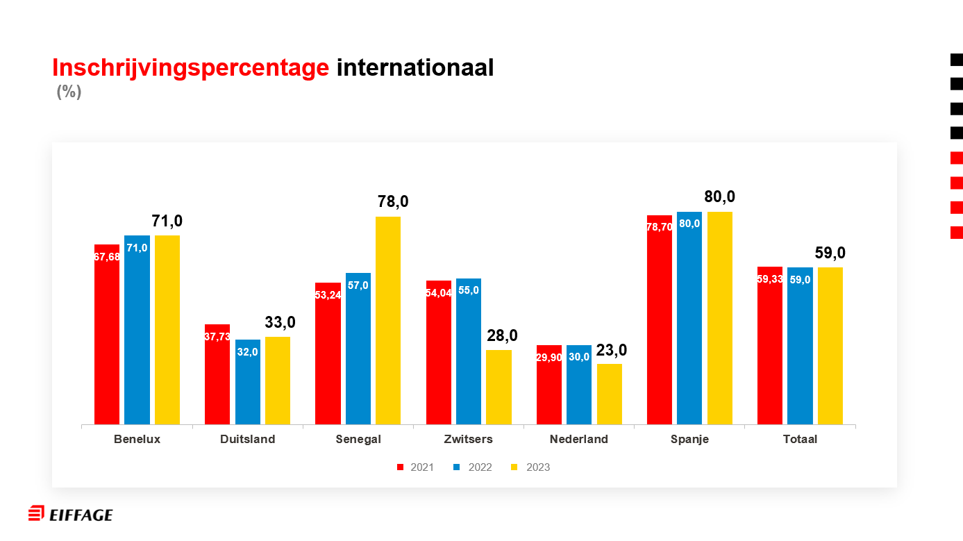 Inschrijvingspercentage internationaal (van de in aanmerking komende werknemers dat heeft ingeschreven)