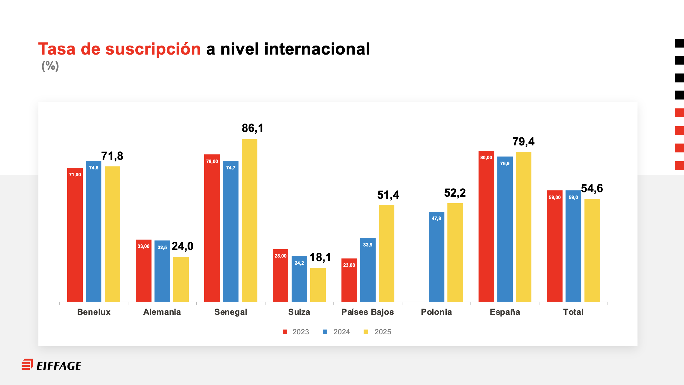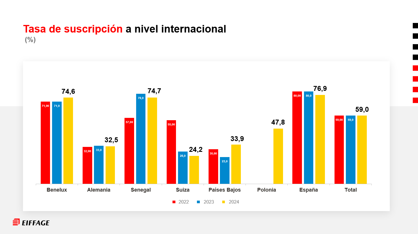 Tasa de suscripción a nivel internacional (% de suscriptores entre los empleados elegibles)